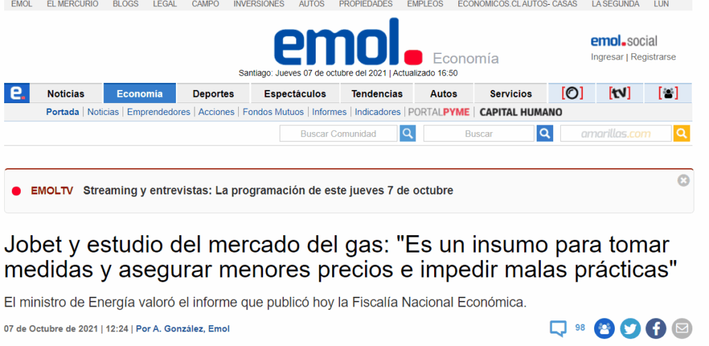 No funciona la libre competencia en el mercado del gas y quien paga nuevamente la cuenta, son los consumidores. Como país tenemos que decir ¡basta! No sabemos si hay acuerdos, negociados o colusiones, por eso le pedimos públicamente a la Fiscalía Nacional Económica que no se quede en el estudio y que haga una investigación formal de este\».