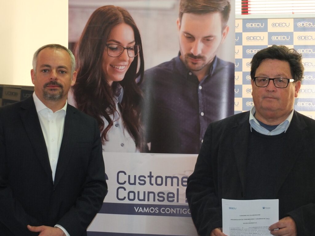 El lunes 12 de agosto, en las oficinas de la Organización de Consumidores y Usuarios, ODECU, se suscribió un acuerdo entre ésta y el Customer Counsel, organismo dependiente de Aguas Andinas, el que busca fortalecer los lazos entre ambas entidades y generar trabajo conjunto en defensa de los consumidores.