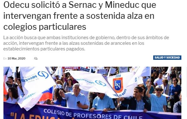 Asimismo, ODECU solicitó a la Superintendencia de Educación, entre otras cosas, dar instrucciones a los establecimientos particulares pagados frente al alza sostenida de sus aranceles.